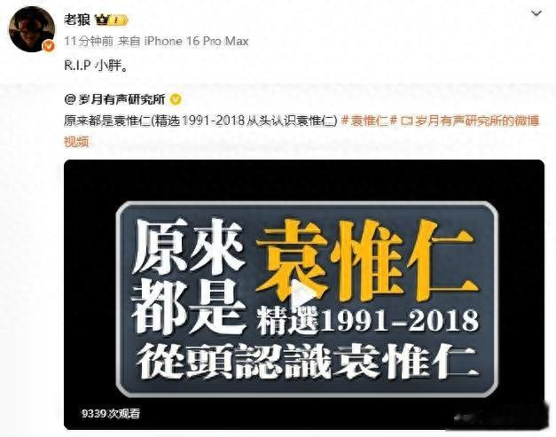 老狼那句“R.I.P 小胖”,看着简单,却藏着老友最深的遗憾,他们是一个时代的音乐人,见证彼此的辉煌,如今故人先走一步,心里的痛,只有懂的人才明白。