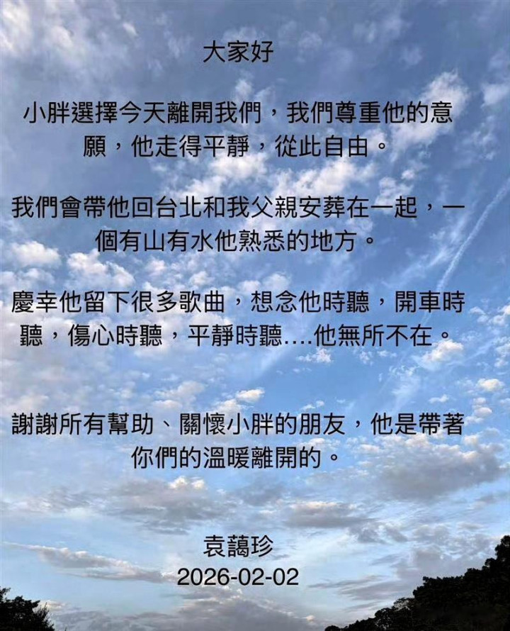 就在今天,台媒确认,57岁音乐人袁惟仁在家中平静离世!姐姐袁蔼珍发讣告,说会带他回台北,和父亲合葬在有山有水的熟悉之地,最戳心的是那句:他留下的歌,想念时听,开车时听,伤心时听,他无处不在;老友老狼也只发了6个字,R.I.P 小胖,简单却满是痛惜。